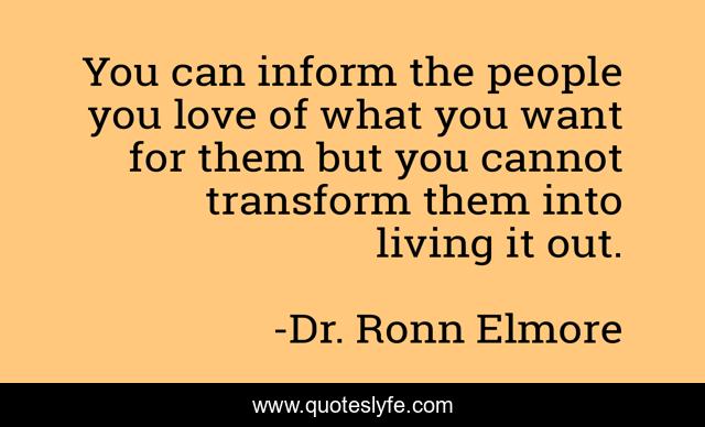 This page presents the quote "You can inform the people you love of what you want for them but you cannot transform them into living it out.". Author of this quote is Dr. Ronn Elmore. .