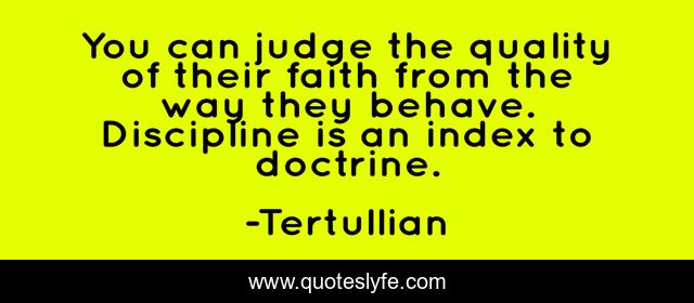 This page presents the quote "You can judge the quality of their faith from the way they behave. Discipline is an index to doctrine.". Author of this quote is Tertullian. This quote is about discipline, faith,.