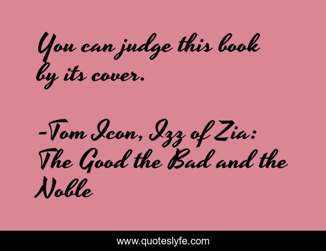 This page presents the quote "You can judge this book by its cover.". Author of this quote is Tom Icon, Izz of Zia: The Good the Bad and the Noble. .