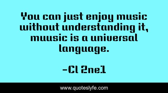 This page presents the quote "You can just enjoy music without understanding it, muusic is a universal language.". Author of this quote is Cl 2ne1. This quote is about kpop, music,.
