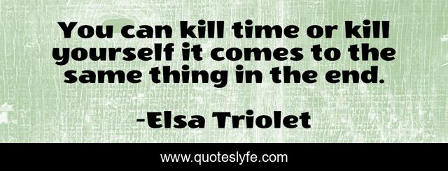 "Elsa Triolet Quotes." Quoteslyfe.com, 2025. Sat. 06 Dec. 2025. <https://www.quoteslyfe.com/quote/You-can-kill-time-or-kill-yourself-271807>.