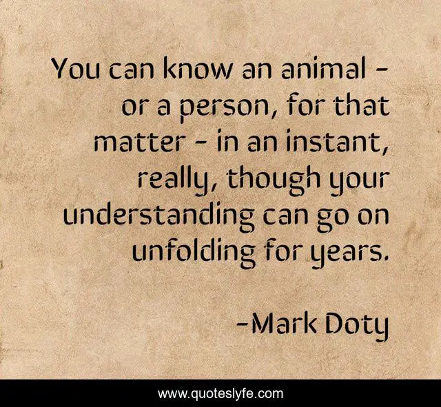 "Mark Doty Quotes." Quoteslyfe.com, 2025. Sun. 07 Dec. 2025. <https://www.quoteslyfe.com/quote/You-can-know-an-animal-or-a-156776>.