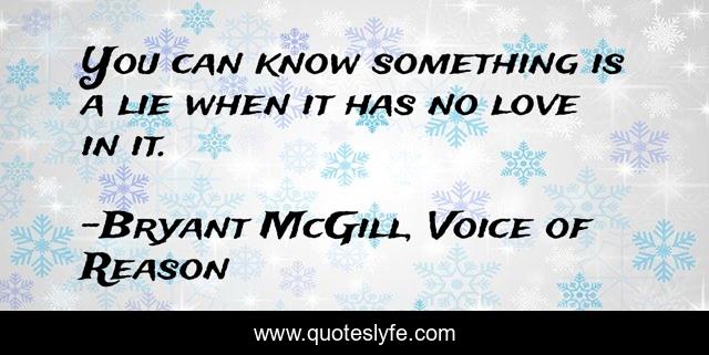 This page presents the quote "You can know something is a lie when it has no love in it.". Author of this quote is Bryant McGill, Voice of Reason. This quote is about love, truth-telling, affection, feelings,.