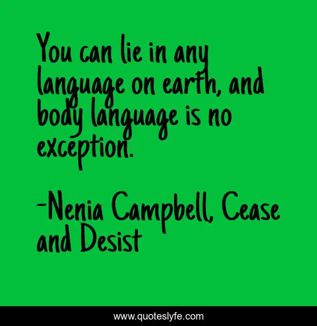 "Nenia Campbell, Cease and Desist Quotes." Quoteslyfe.com, 2025. Fri. 05 Dec. 2025. <https://www.quoteslyfe.com/quote/You-can-lie-in-any-language-on-159210>.