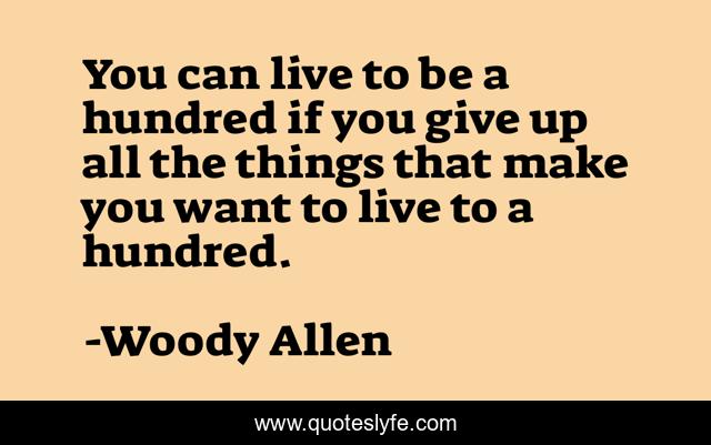 "Woody Allen Quotes." Quoteslyfe.com, 2025. Fri. 05 Dec. 2025. <https://www.quoteslyfe.com/quote/You-can-live-to-be-a-hundred-260688>.