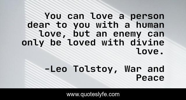 This page presents the quote "You can love a person dear to you with a human love, but an enemy can only be loved with divine love.". Author of this quote is Leo Tolstoy, War and Peace. This quote is about enthusiasm, love, inspirational, affection,.