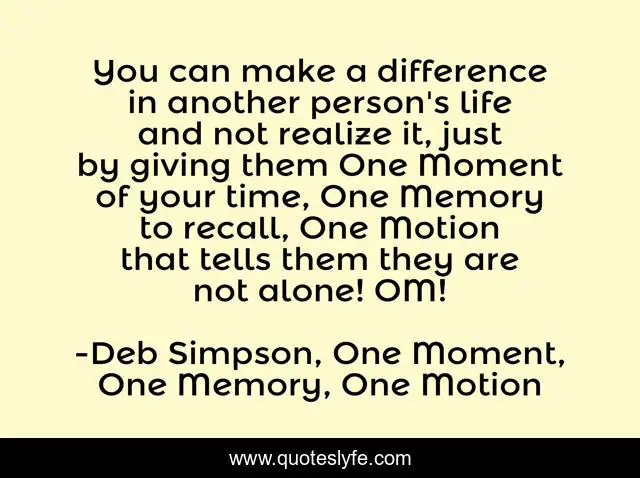 "Deb Simpson, One Moment, One Memory, One Motion Quotes." Quoteslyfe.com, 2025. Sat. 13 Dec. 2025. <https://www.quoteslyfe.com/quote/You-can-make-a-difference-in-another-25007>.