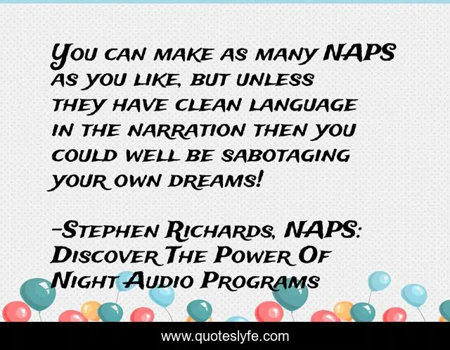 "Stephen Richards, NAPS: Discover The Power Of Night Audio Programs Quotes." Quoteslyfe.com, 2025. Fri. 05 Dec. 2025. <https://www.quoteslyfe.com/quote/You-can-make-as-many-NAPS-as-54163>.