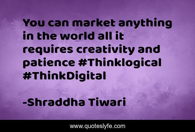This page presents the quote "You can market anything in the world all it requires creativity and patience #Thinklogical #ThinkDigital". Author of this quote is Shraddha Tiwari. .