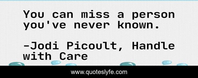 This page presents the quote "You can miss a person you've never known.". Author of this quote is Jodi Picoult, Handle with Care. .