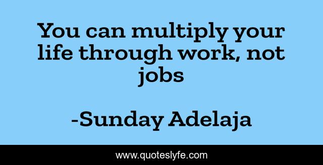 This page presents the quote "You can multiply your life through work, not jobs". Author of this quote is Sunday Adelaja. This quote is about life, blessing, finance, money, work, job, joblessness, purpose, time,.