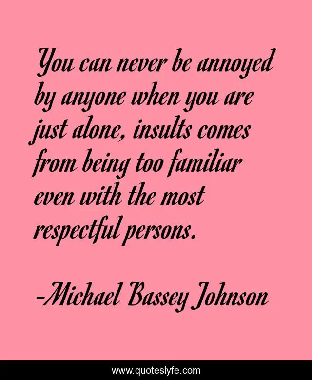 You can never be annoyed by anyone when you are just alone, insults comes from being too familiar even with the most respectful persons.