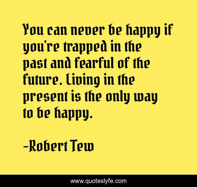 This page presents the quote "You can never be happy if you're trapped in the past and fearful of the future. Living in the present is the only way to be happy.". Author of this quote is Robert Tew. This quote is about life, happiness, present, wisdom,.