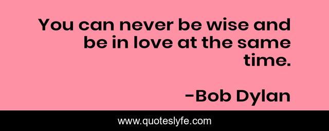 This page presents the quote "You can never be wise and be in love at the same time.". Author of this quote is Bob Dylan. This quote is about love, bob-dylan, affection,.