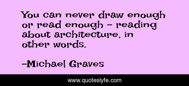 This page presents the quote "You can never draw enough or read enough - reading about architecture, in other words.". Author of this quote is Michael Graves. This quote is about reading, words,.