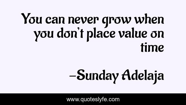 This page presents the quote "You can never grow when you don’t place value on time". Author of this quote is Sunday Adelaja. This quote is about life, blessing, finance, money, work, wisdom, time-well-spent, job, joblessness,.