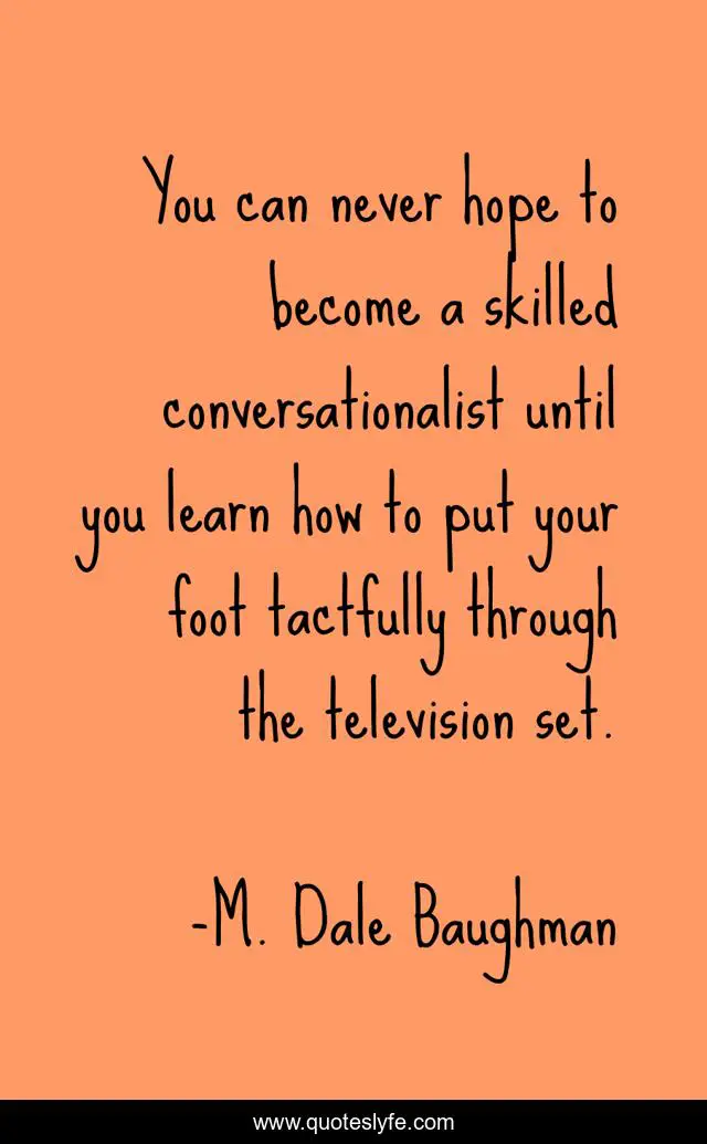 This page presents the quote "You can never hope to become a skilled conversationalist until you learn how to put your foot tactfully through the television set.". Author of this quote is M. Dale Baughman. .
