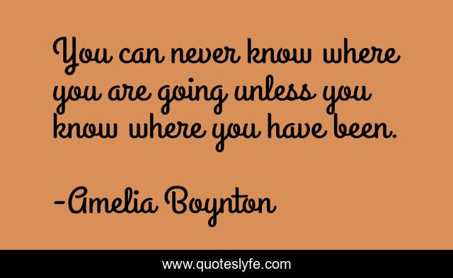 This page presents the quote "You can never know where you are going unless you know where you have been.". Author of this quote is Amelia Boynton. This quote is about never-know, be-yourself, going, have-been, inspirational, amelia-boynton-robinson, enthusiasm, unless,.