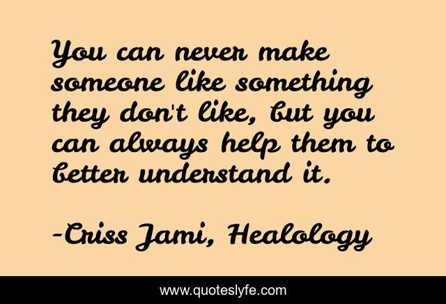 "Criss Jami, Healology Quotes." Quoteslyfe.com, 2025. Fri. 05 Dec. 2025. <https://www.quoteslyfe.com/quote/You-can-never-make-someone-like-something-68378>.