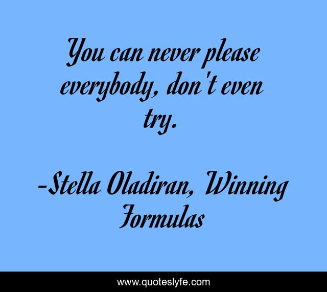 "Stella Oladiran, Winning Formulas Quotes." Quoteslyfe.com, 2025. Fri. 05 Dec. 2025. <https://www.quoteslyfe.com/quote/You-can-never-please-everybody-don-t-204084>.