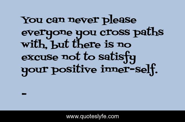 This page presents the quote "You can never please everyone you cross paths with, but there is no excuse not to satisfy your positive inner-self.". Author of this quote is . This quote is about edmond-mbiaka, satisfy-your-inner-self, the-people-you-cross-path-with, crossing-path, your-positive-inner-self,.