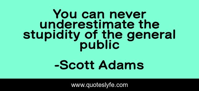 "Scott Adams Quotes." Quoteslyfe.com, 2025. Fri. 05 Dec. 2025. <https://www.quoteslyfe.com/quote/You-can-never-underestimate-the-stupidity-of-233693>.