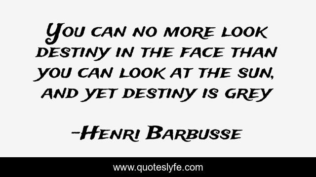 This page presents the quote "You can no more look destiny in the face than you can look at the sun, and yet destiny is grey". Author of this quote is Henri Barbusse. This quote is about destiny, fate,.