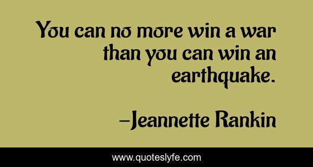 This page presents the quote "You can no more win a war than you can win an earthquake.". Author of this quote is Jeannette Rankin. .