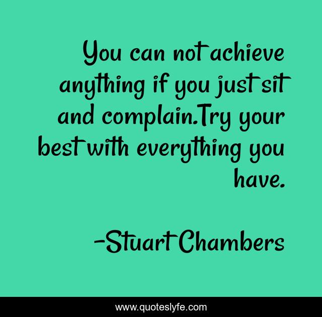This page presents the quote "You can not achieve anything if you just sit and complain.Try your best with everything you have.". Author of this quote is Stuart Chambers. This quote is about try, achieve, best,.