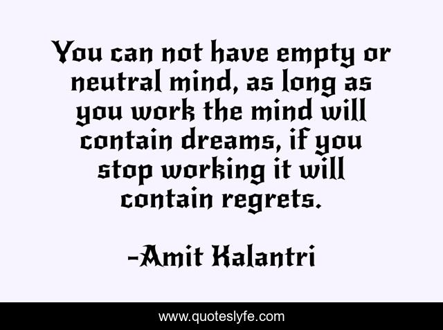You can not have empty or neutral mind, as long as you work the mind will contain dreams, if you stop working it will contain regrets.