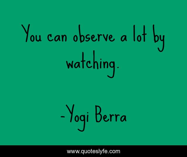 This page presents the quote "You can observe a lot by watching.". Author of this quote is Yogi Berra. This quote is about observe, watching,.