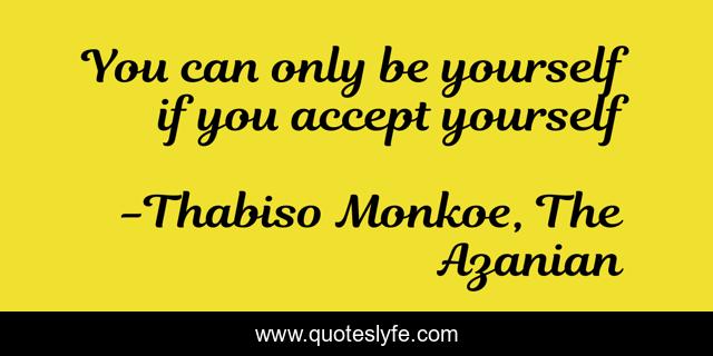 This page presents the quote "You can only be yourself if you accept yourself". Author of this quote is Thabiso Monkoe, The Azanian. .