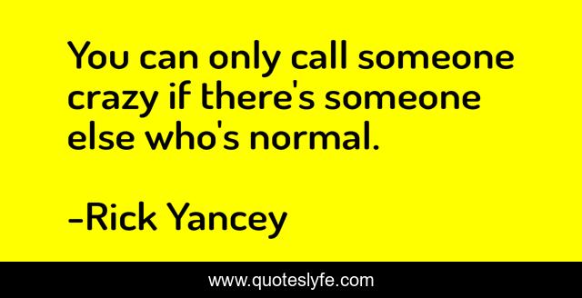 This page presents the quote "You can only call someone crazy if there's someone else who's normal.". Author of this quote is Rick Yancey. This quote is about imagination, crazy, quote,.