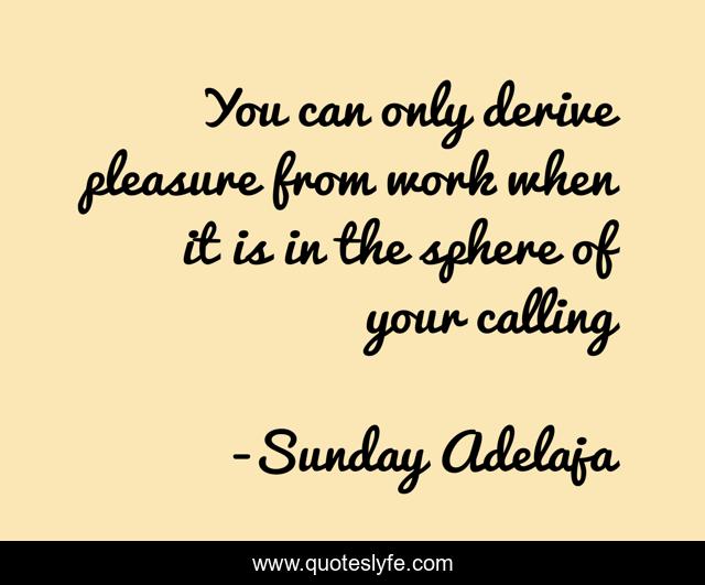 This page presents the quote "You can only derive pleasure from work when it is in the sphere of your calling". Author of this quote is Sunday Adelaja. This quote is about love, people, money, principles, employment, worship, jobless, service, god,.