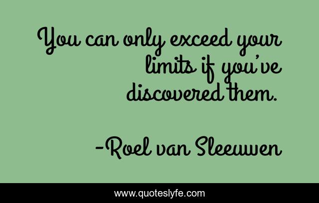 This page presents the quote "You can only exceed your limits if you’ve discovered them.". Author of this quote is Roel van Sleeuwen. This quote is about exceeding, exceed, be-great, boundary, limits, boundaries, great, discover, discovered,.