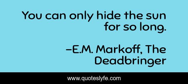 "E.M. Markoff, The Deadbringer Quotes." Quoteslyfe.com, 2025. Sat. 06 Dec. 2025. <https://www.quoteslyfe.com/quote/You-can-only-hide-the-sun-for-82457>.