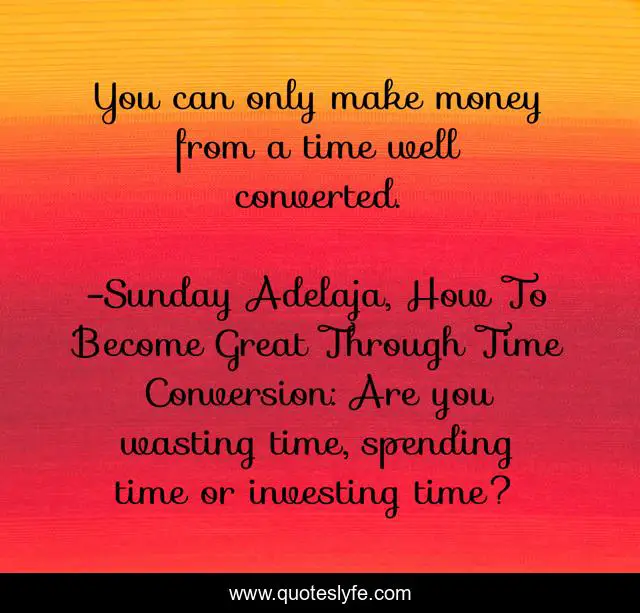 This page presents the quote "You can only make money from a time well converted.". Author of this quote is Sunday Adelaja, How To Become Great Through Time Conversion: Are you wasting time, spending time or investing time?. This quote is about wealth-creation, money, life, conversion, productivity, wealth, greatness, waste, humanity,.
