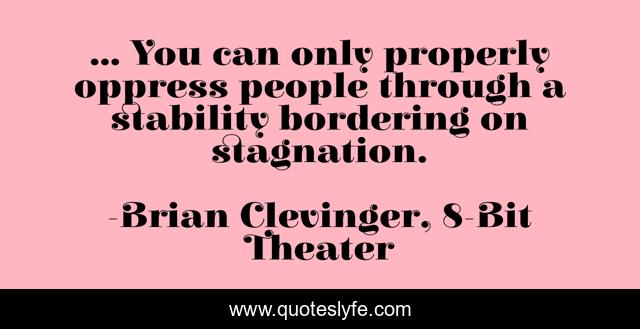 This page presents the quote "... You can only properly oppress people through a stability bordering on stagnation.". Author of this quote is Brian Clevinger, 8-Bit Theater. This quote is about politics, oppression, stagnant, comfortable,.