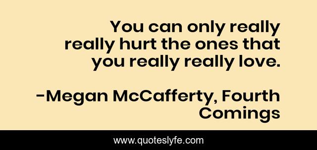 This page presents the quote "You can only really really hurt the ones that you really really love.". Author of this quote is Megan McCafferty, Fourth Comings. This quote is about love, affection, hurt,.