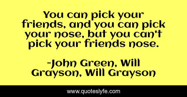 This page presents the quote "You can pick your friends, and you can pick your nose, but you can't pick your friends nose.". Author of this quote is John Green, Will Grayson, Will Grayson. This quote is about friends, friendships, humor, wise-words,.