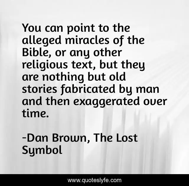 This page presents the quote "You can point to the alleged miracles of the Bible, or any other religious text, but they are nothing but old stories fabricated by man and then exaggerated over time.". Author of this quote is Dan Brown, The Lost Symbol. .