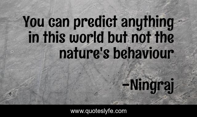 This page presents the quote "You can predict anything in this world but not the nature's behaviour". Author of this quote is Ningraj. .