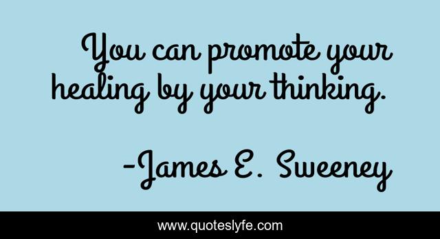 This page presents the quote "You can promote your healing by your thinking.". Author of this quote is James E. Sweeney. This quote is about positive, confidence,.