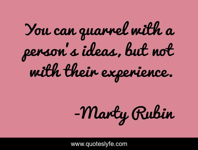 This page presents the quote "You can quarrel with a person's ideas, but not with their experience.". Author of this quote is Marty Rubin. This quote is about experience, ideas, opposition,.