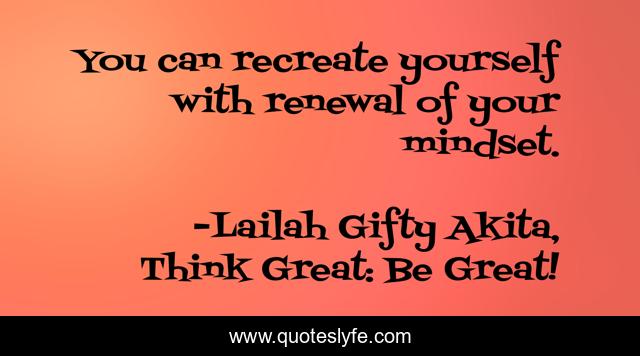 "Lailah Gifty Akita, Think Great: Be Great! Quotes." Quoteslyfe.com, 2025. Sat. 06 Dec. 2025. <https://www.quoteslyfe.com/quote/You-can-recreate-yourself-with-renewal-of-94952>.