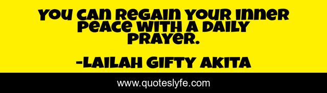 This page presents the quote "You can regain your inner peace with a daily prayer.". Author of this quote is Lailah Gifty Akita. This quote is about daily-life, self-awareness, inner-peace, prayer,.