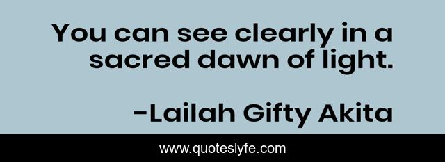 This page presents the quote "You can see clearly in a sacred dawn of light.". Author of this quote is Lailah Gifty Akita. This quote is about light, spiritual, change-life, self-awareness, encouragement,.