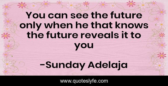 This page presents the quote "You can see the future only when he that knows the future reveals it to you". Author of this quote is Sunday Adelaja. This quote is about reveals, future, knows,.