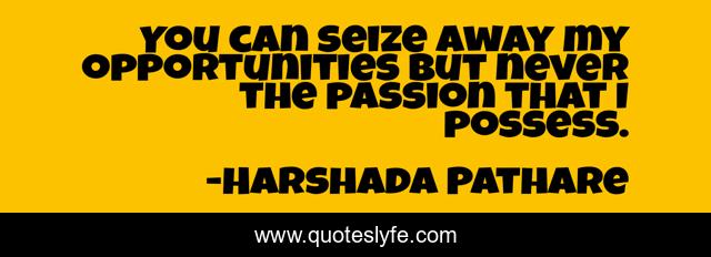 This page presents the quote "You can seize away my opportunities but never the passion that I possess.". Author of this quote is Harshada Pathare. .