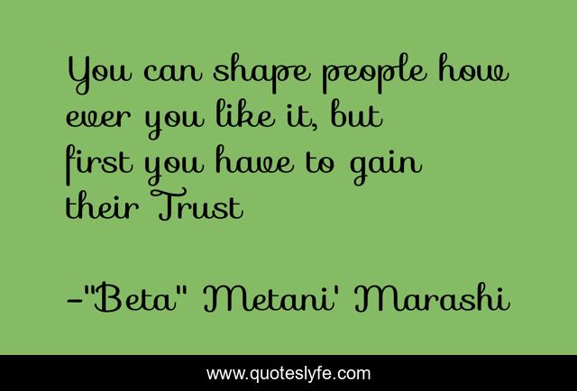 This page presents the quote "You can shape people how ever you like it, but first you have to gain their Trust". Author of this quote is "Beta" Metani' Marashi. .